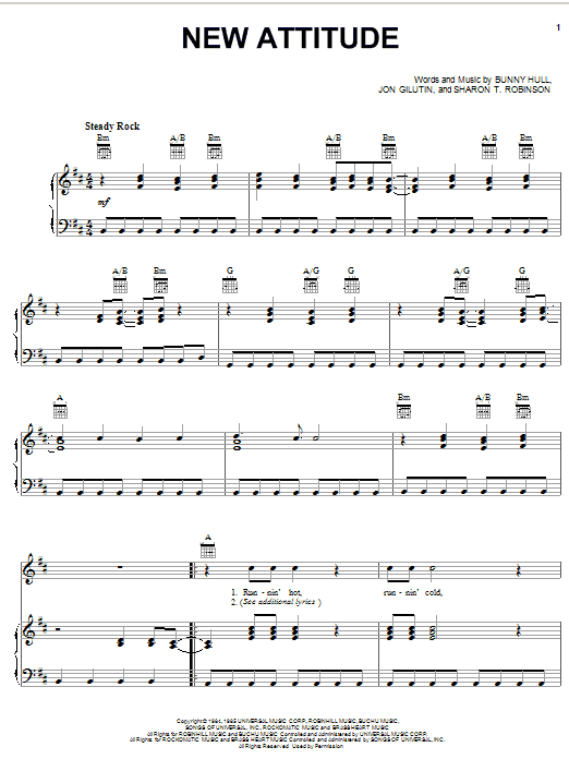 Download or print Patti LaBelle New Attitude sheet music, chords and digital score arranged for Piano, Vocal & Guitar Chords (Right-Hand Melody). This Pop score includes 5 page(s).