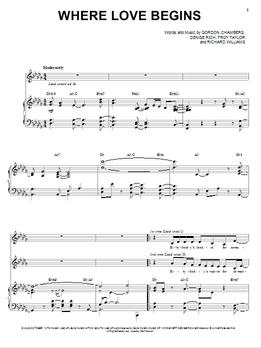 Download or print Patti LaBelle with Yolanda Adams Where Love Begins sheet music, chords and digital score arranged for Piano & Vocal. This Christian score includes 8 page(s).