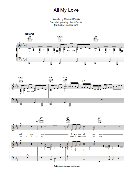 Download or print Patti Page All My Love sheet music, chords and digital score arranged for Piano, Vocal & Guitar Chords. This Love score includes 6 page(s).