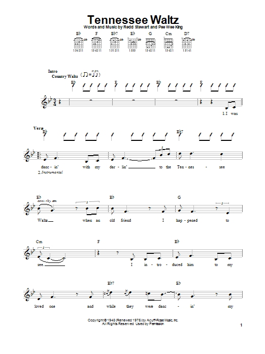 Download or print Patti Page Tennessee Waltz sheet music, chords and digital score arranged for Drum Chart. This Country score includes 1 page(s).