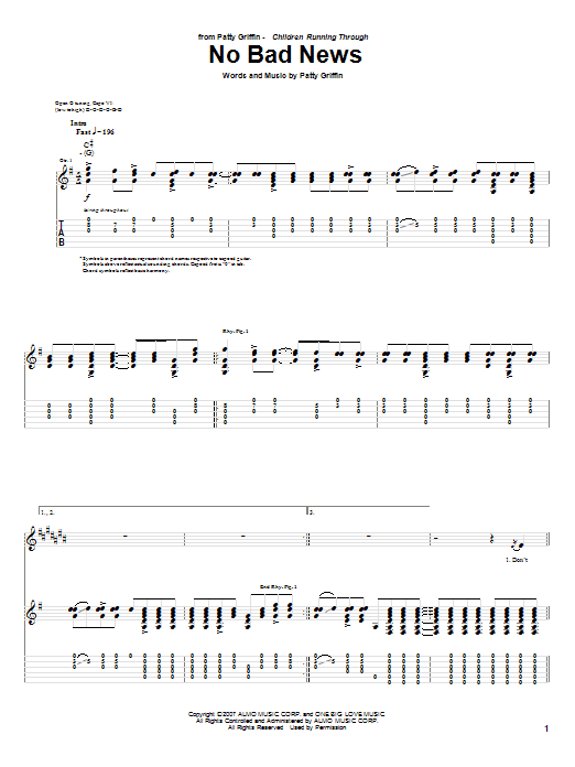 Download or print Patty Griffin No Bad News sheet music, chords and digital score arranged for Guitar Tab. This Folk score includes 6 page(s).