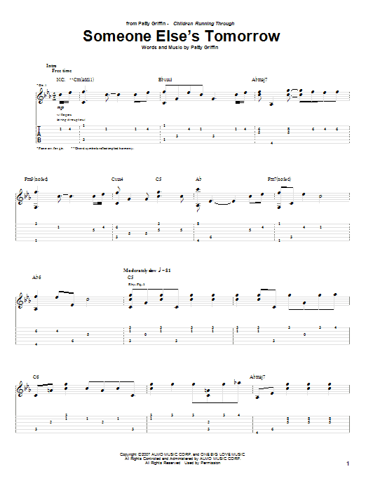 Download or print Patty Griffin Someone Else's Tomorrow sheet music, chords and digital score arranged for Guitar Tab. This Folk score includes 5 page(s).