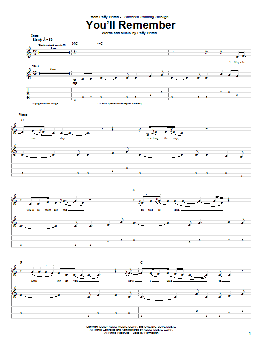 Download or print Patty Griffin You'll Remember sheet music, chords and digital score arranged for Guitar Tab. This Folk score includes 3 page(s).