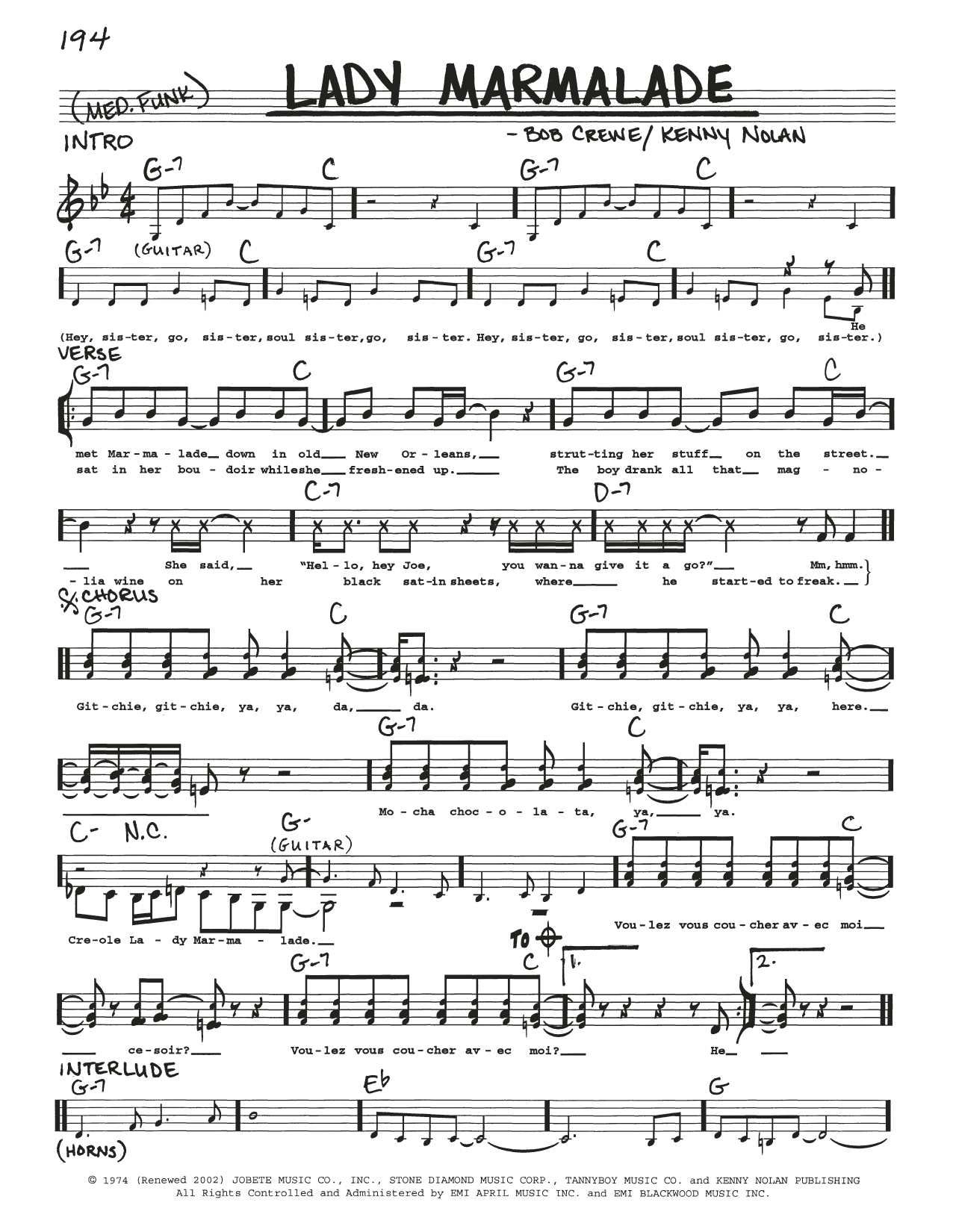 Quick facts Lady Marmalade about digital sheet music