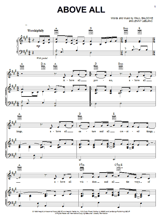 Download or print Paul Baloche Above All sheet music, chords and digital score arranged for Easy Piano. This Christian score includes 4 page(s).