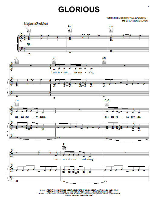 Download or print Paul Baloche Glorious sheet music, chords and digital score arranged for Piano, Vocal & Guitar Chords (Right-Hand Melody). This Easter score includes 8 page(s).