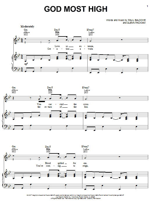 Download or print Paul Baloche God Most High sheet music, chords and digital score arranged for Piano, Vocal & Guitar Chords (Right-Hand Melody). This Christian score includes 6 page(s).