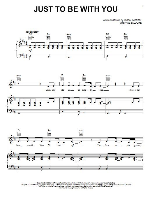 Download or print Paul Baloche Just To Be With You sheet music, chords and digital score arranged for Piano, Vocal & Guitar Chords (Right-Hand Melody). This Christian score includes 6 page(s).