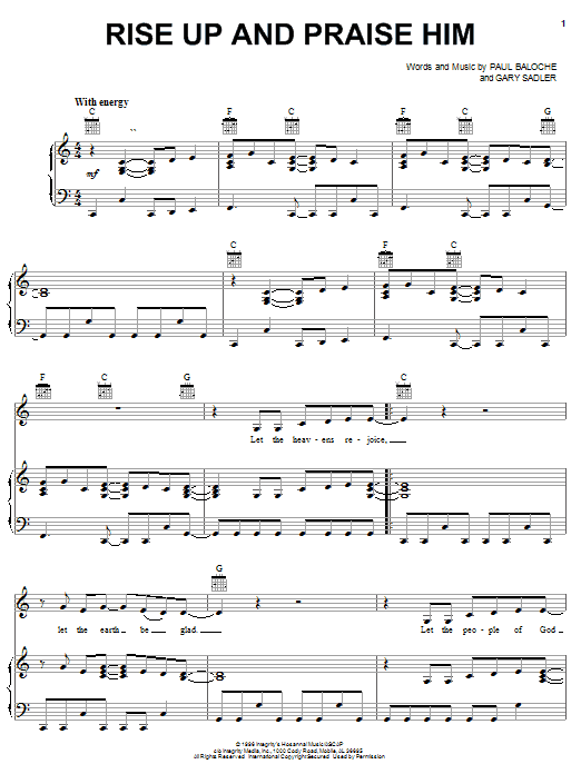Download or print Paul Baloche Rise Up And Praise Him sheet music, chords and digital score arranged for Piano, Vocal & Guitar Chords (Right-Hand Melody). This Christian score includes 4 page(s).