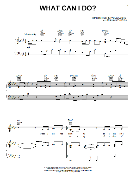 Download or print Paul Baloche What Can I Do? sheet music, chords and digital score arranged for Piano, Vocal & Guitar Chords (Right-Hand Melody). This Christian score includes 6 page(s).