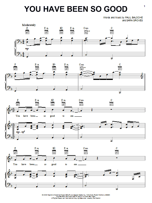 Download or print Paul Baloche You Have Been So Good sheet music, chords and digital score arranged for Piano, Vocal & Guitar Chords (Right-Hand Melody). This Christian score includes 6 page(s).