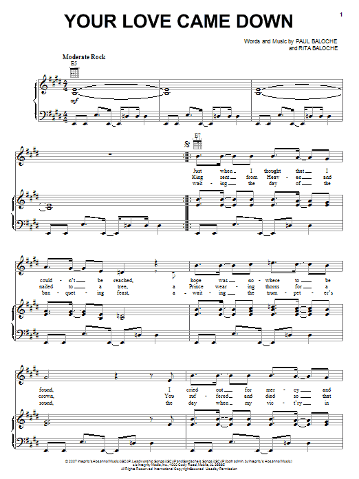 Download or print Paul Baloche Your Love Came Down sheet music, chords and digital score arranged for Piano, Vocal & Guitar Chords (Right-Hand Melody). This Christian score includes 6 page(s).