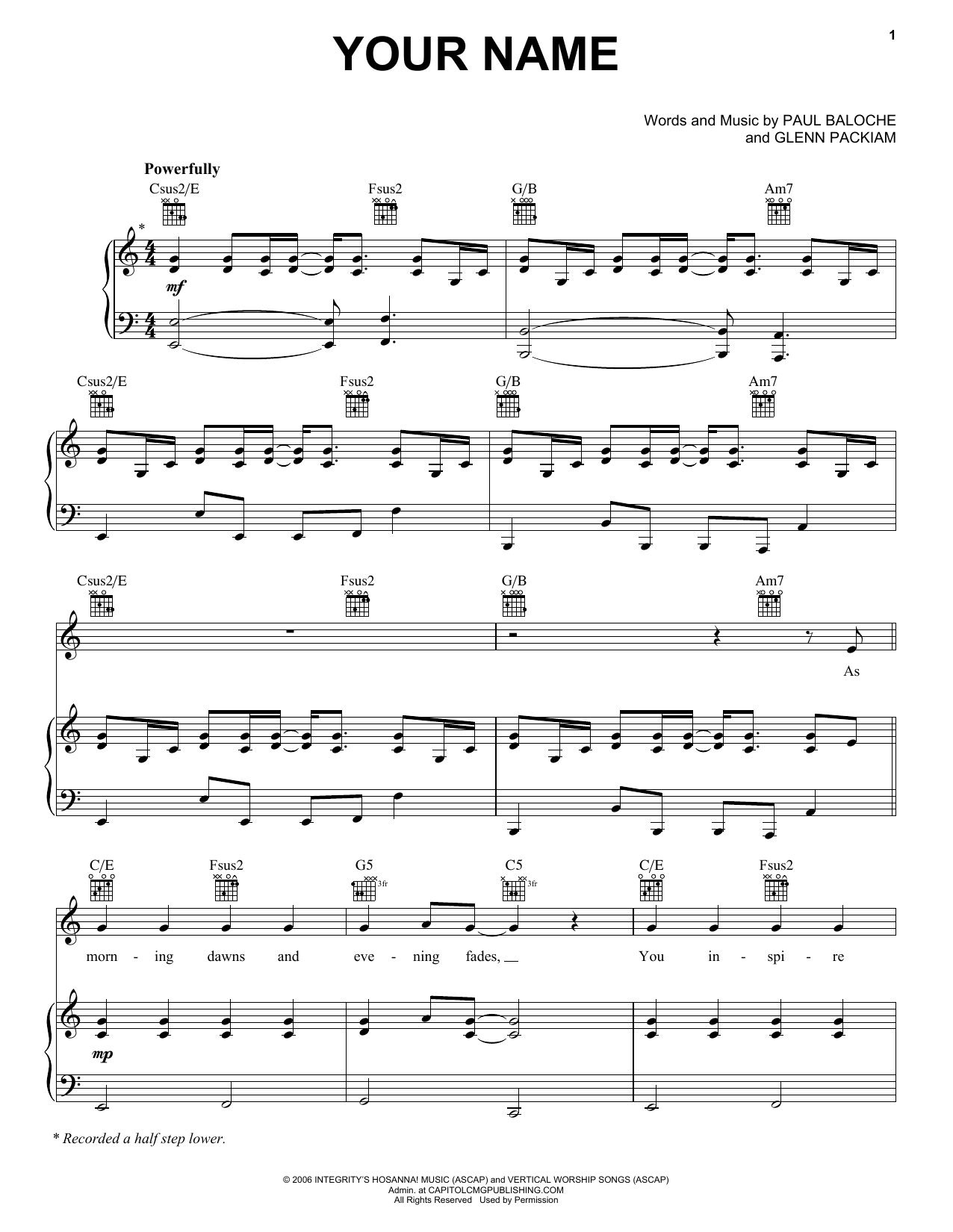 Download or print Paul Baloche Your Name sheet music, chords and digital score arranged for Easy Guitar Tab. This Christian score includes 3 page(s).