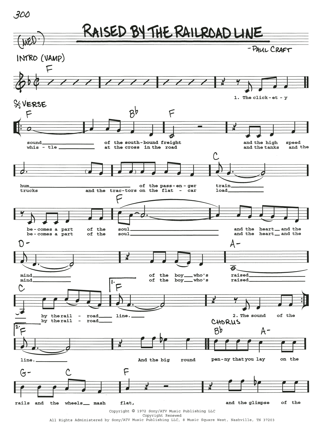 Download or print Paul Craft Raised By The Railroad Line sheet music, chords and digital score arranged for Real Book – Melody, Lyrics & Chords. This Jazz score includes 2 page(s).