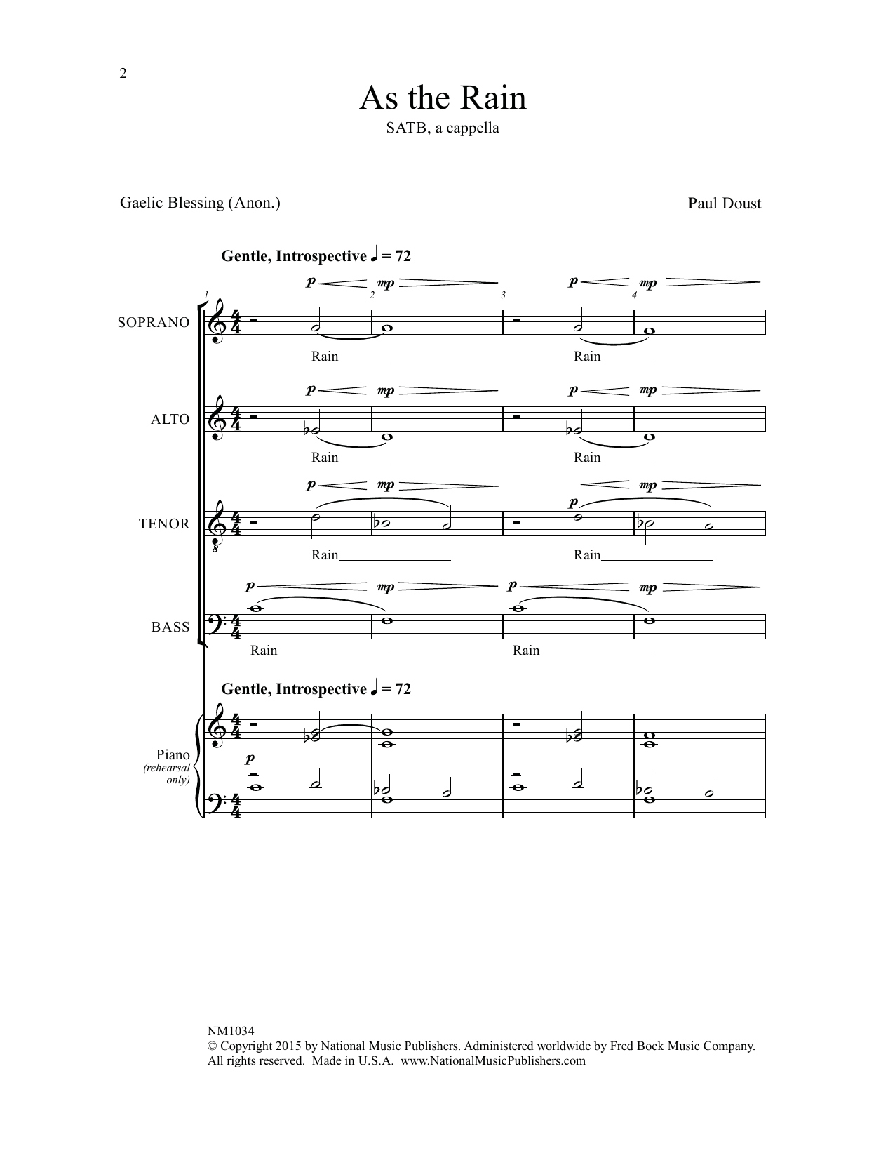 Download or print Paul Doust As the Rain sheet music, chords and digital score arranged for SATB Choir. This A Cappella score includes 7 page(s).