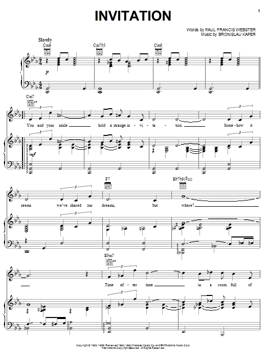 Download or print Paul Francis Webster Invitation sheet music, chords and digital score arranged for Real Book – Melody & Chords – C Instruments. This Jazz score includes 1 page(s).