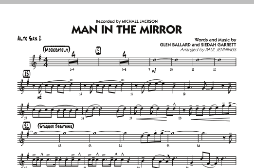Download or print Paul Jennings Man In The Mirror - Alto Sax 2 sheet music, chords and digital score arranged for Jazz Ensemble. This Pop score includes 1 page(s).
