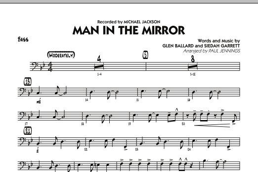 Download or print Paul Jennings Man In The Mirror - Bass sheet music, chords and digital score arranged for Jazz Ensemble. This Pop score includes 1 page(s).