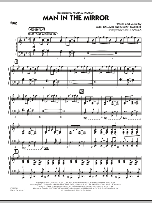 Download or print Paul Jennings Man In The Mirror - Piano sheet music, chords and digital score arranged for Jazz Ensemble. This Pop score includes 2 page(s).