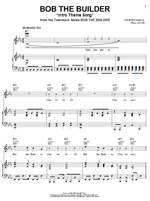 Quick facts Bob The Builder Intro Theme Song about digital sheet music