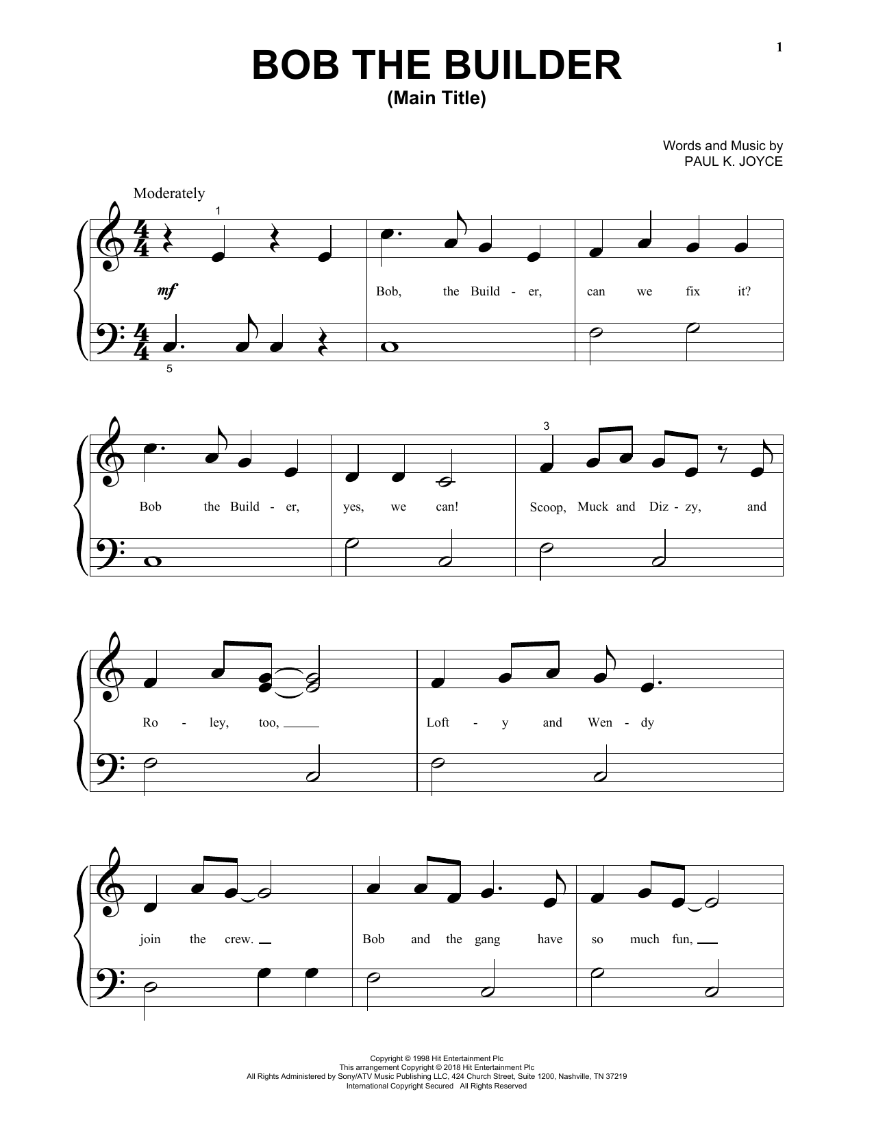Download or print Paul K. Joyce Bob The Builder (Main Title) sheet music, chords and digital score arranged for Ukulele. This Children score includes 2 page(s).