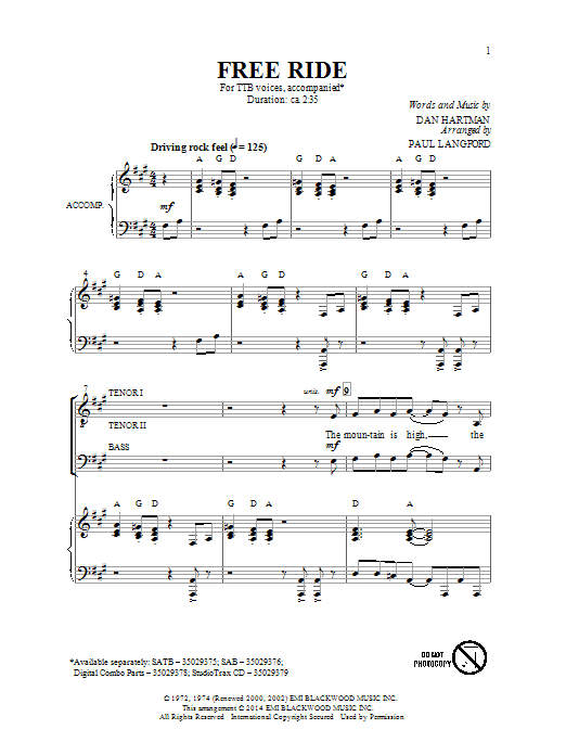 Download or print Paul Langford Free Ride sheet music, chords and digital score arranged for SATB Choir. This Pop score includes 13 page(s).