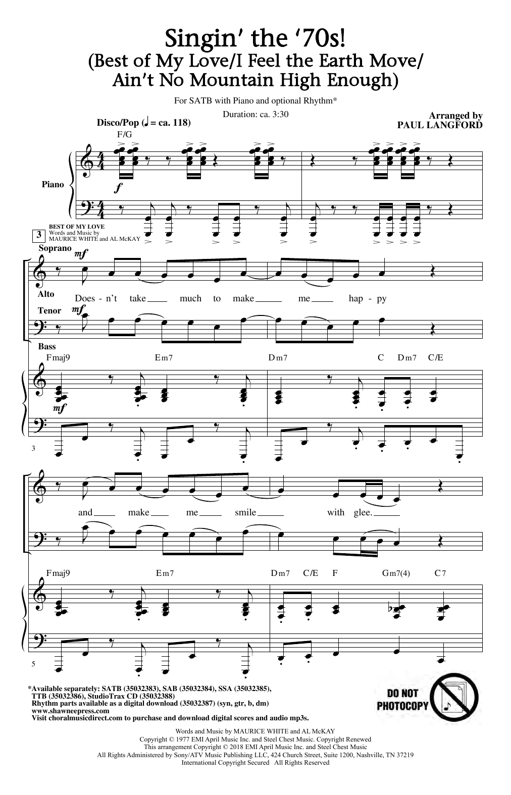 Download or print Paul Langford Singin' The 70's (arr. Paul Langford) sheet music, chords and digital score arranged for SAB Choir. This Pop score includes 15 page(s).