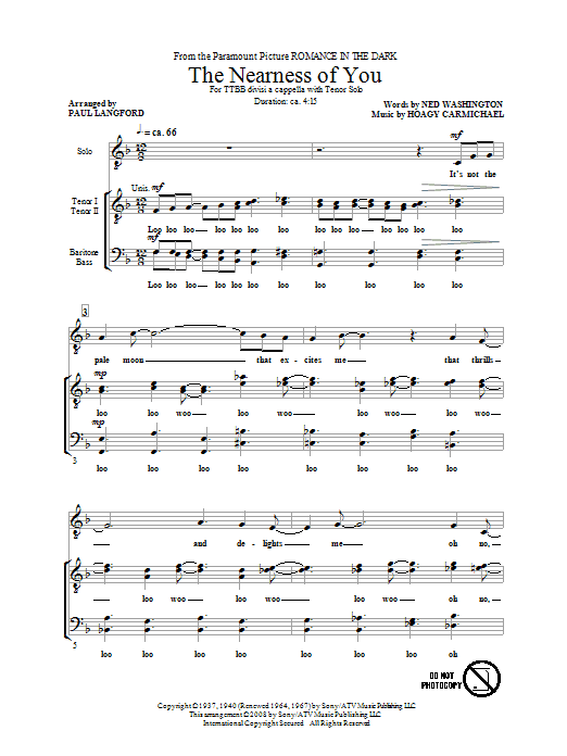 Download or print Paul Langford The Nearness Of You sheet music, chords and digital score arranged for TTBB Choir. This Concert score includes 8 page(s).