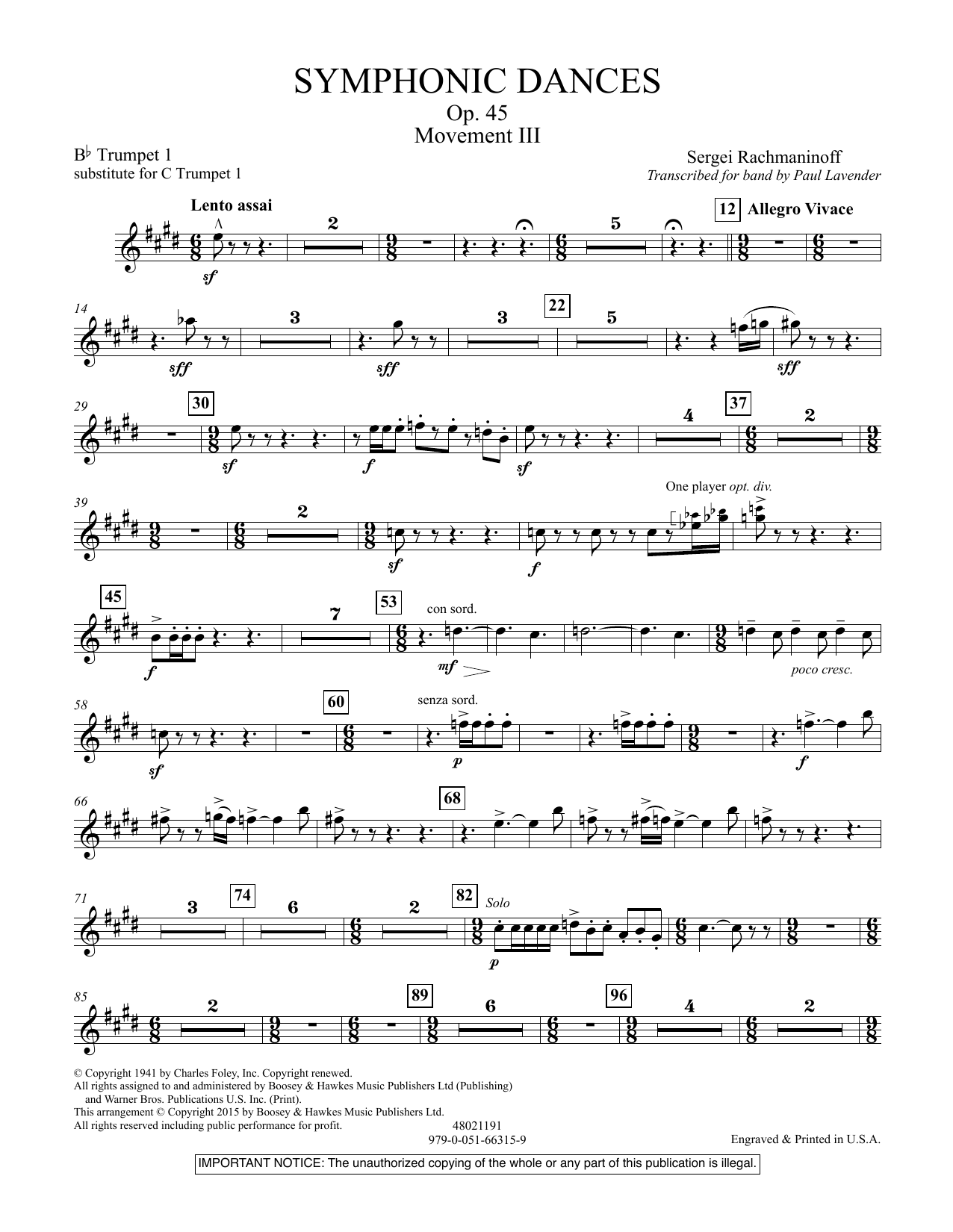 Quick facts Symphonic Dances, Op.45 - Bb Trumpet Parts - Digital Only - Bb Trumpet 1 (sub. C Tpt. 1) about digital sheet music