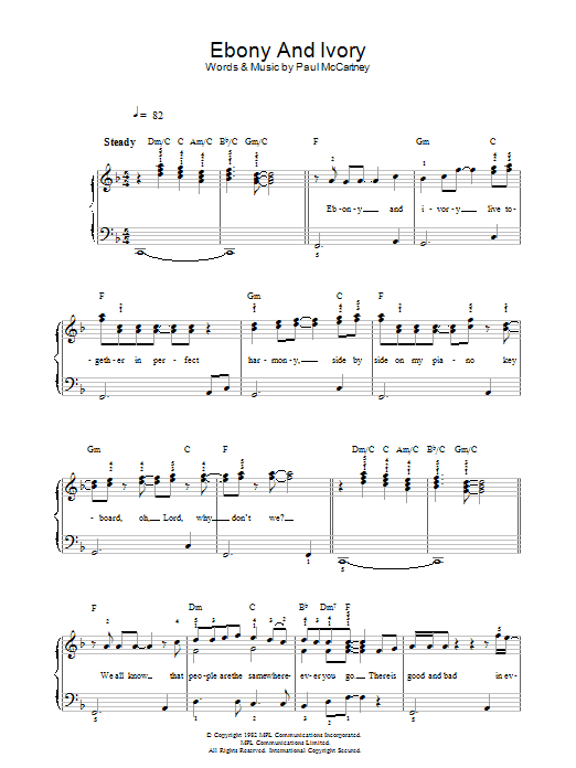 Download or print Paul McCartney and Stevie Wonder Ebony And Ivory sheet music, chords and digital score arranged for Super Easy Piano. This Pop score includes 2 page(s).