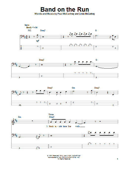 Download or print Paul McCartney and Wings Band On The Run sheet music, chords and digital score arranged for Piano Solo. This Pop score includes 4 page(s).