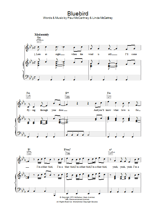 Download or print Paul McCartney Bluebird sheet music, chords and digital score arranged for Piano, Vocal & Guitar Chords. This Pop score includes 3 page(s).