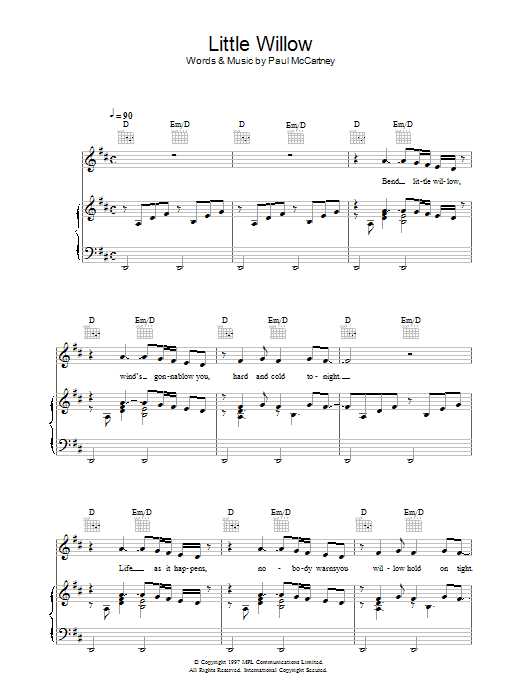 Download or print Paul McCartney Little Willow sheet music, chords and digital score arranged for Guitar Chords/Lyrics. This Rock score includes 2 page(s).
