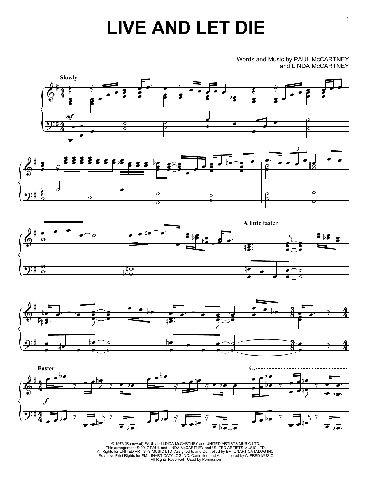 Download or print Paul McCartney Live And Let Die sheet music, chords and digital score arranged for Piano Solo. This Film/TV score includes 3 page(s).