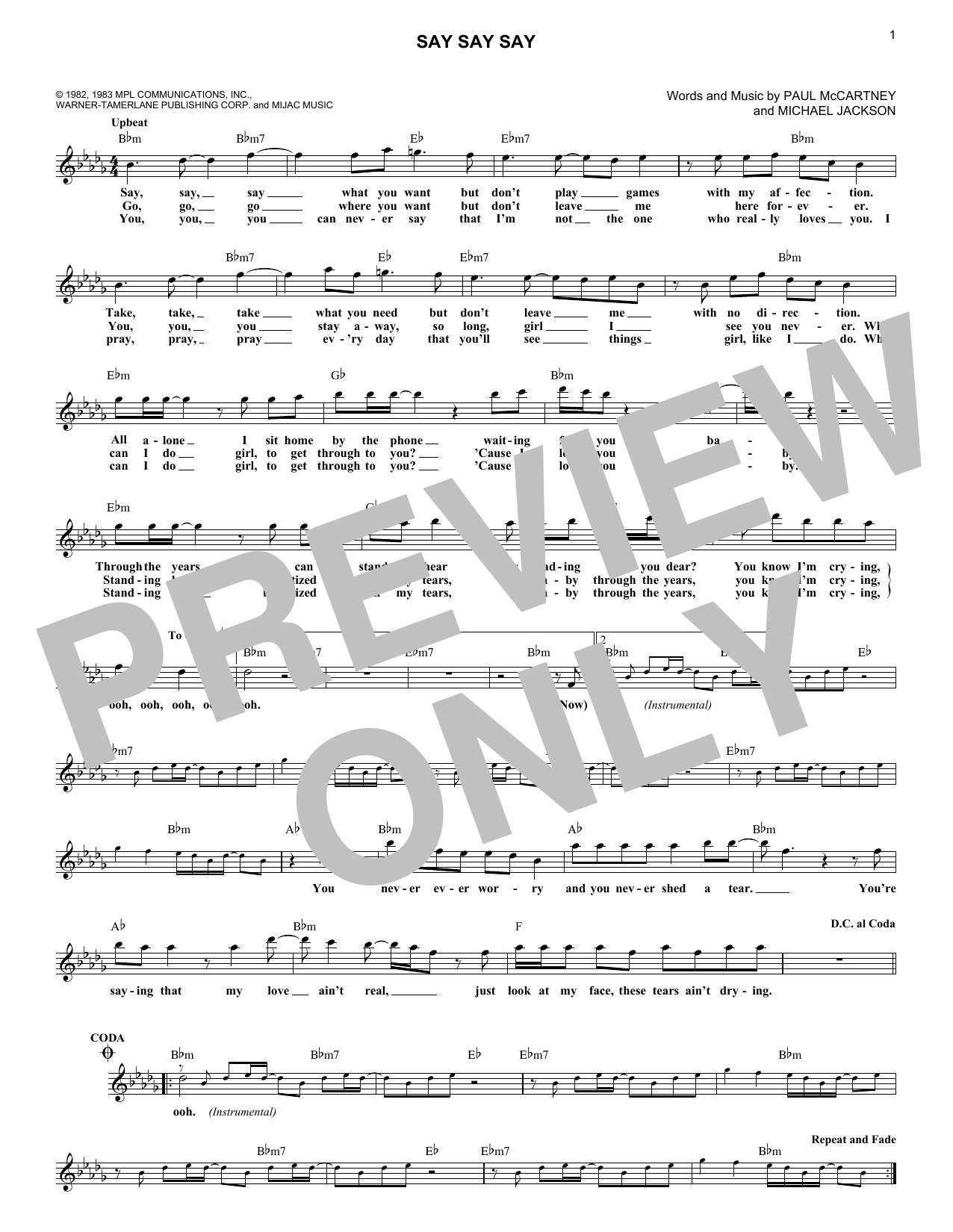 Download or print Paul McCartney & Michael Jackson Say Say Say sheet music, chords and digital score arranged for Easy Piano. This Pop score includes 4 page(s).