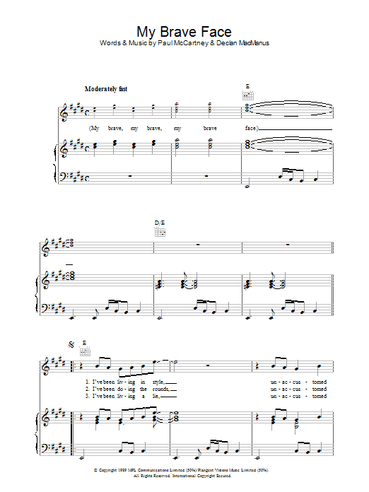 Download or print Paul McCartney My Brave Face sheet music, chords and digital score arranged for Guitar Chords/Lyrics. This Pop score includes 3 page(s).