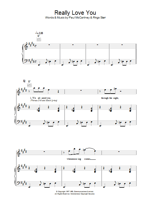 Download or print Paul McCartney Really Love You sheet music, chords and digital score arranged for Guitar Chords/Lyrics. This Rock score includes 4 page(s).