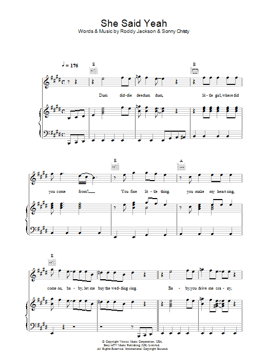 Quick facts She Said Yeah about digital sheet music