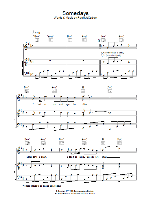 Download or print Paul McCartney Somedays sheet music, chords and digital score arranged for Guitar Chords/Lyrics. This Pop score includes 3 page(s).