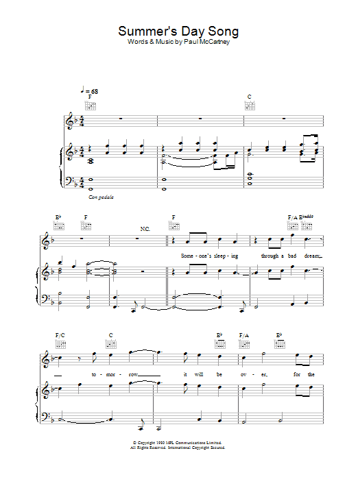 Download or print Paul McCartney Summer's Day Song sheet music, chords and digital score arranged for Guitar Chords/Lyrics. This Rock score includes 2 page(s).