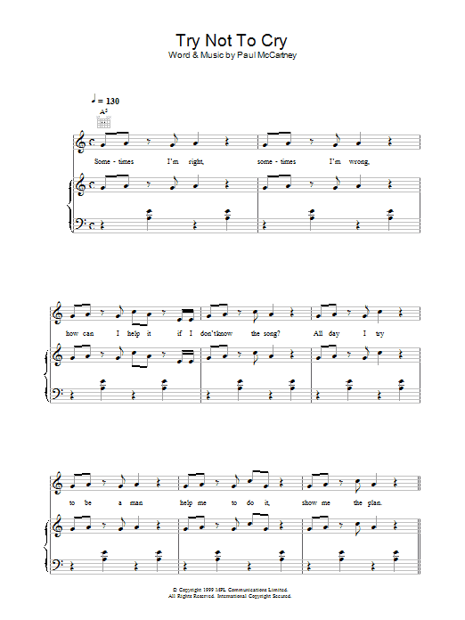 Download or print Paul McCartney Try Not To Cry sheet music, chords and digital score arranged for Guitar Chords/Lyrics. This Rock score includes 2 page(s).