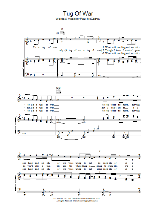 Download or print Paul McCartney Tug Of War sheet music, chords and digital score arranged for Piano, Vocal & Guitar Chords. This Pop score includes 5 page(s).