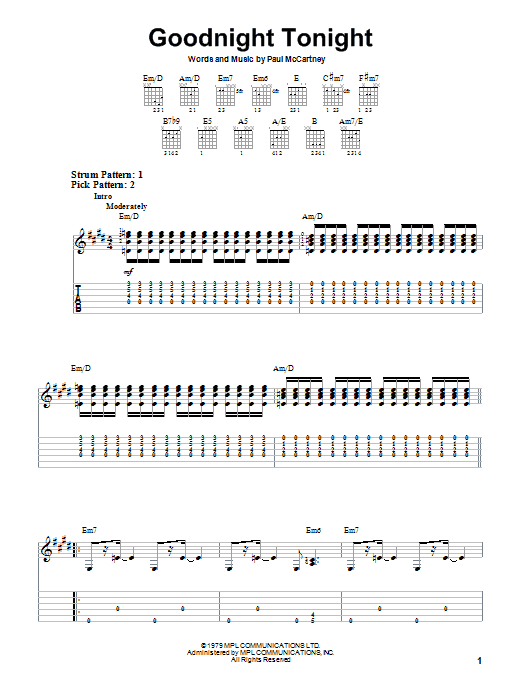 Download or print Paul McCartney & Wings Goodnight Tonight sheet music, chords and digital score arranged for Guitar Chords/Lyrics. This Rock score includes 3 page(s).