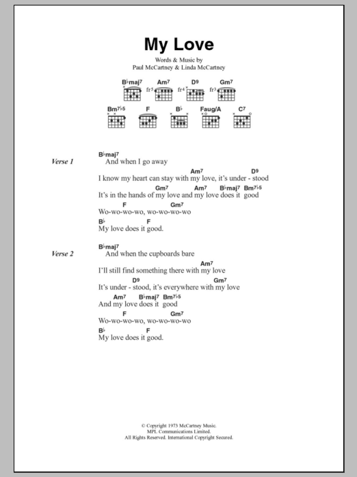 Download or print Paul McCartney & Wings My Love sheet music, chords and digital score arranged for Guitar Chords/Lyrics. This Rock score includes 2 page(s).