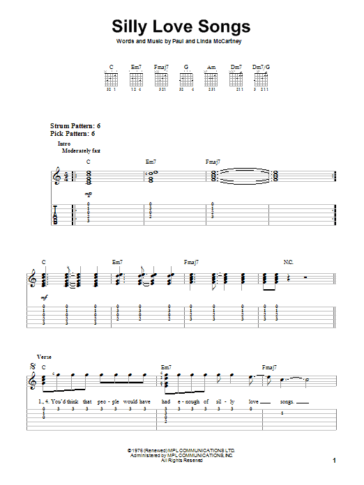 Download or print Paul McCartney & Wings Silly Love Songs sheet music, chords and digital score arranged for Piano, Vocal & Guitar Chords (Right-Hand Melody). This Pop score includes 9 page(s).