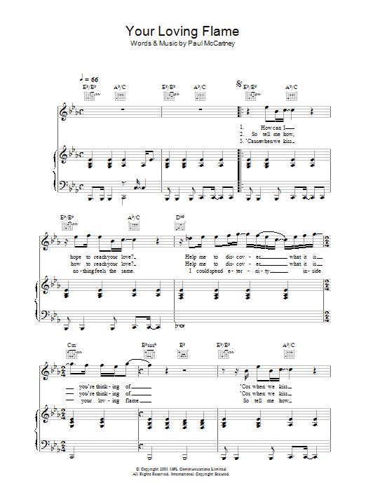 Download or print Paul McCartney Your Loving Flame sheet music, chords and digital score arranged for Guitar Chords/Lyrics. This Rock score includes 2 page(s).