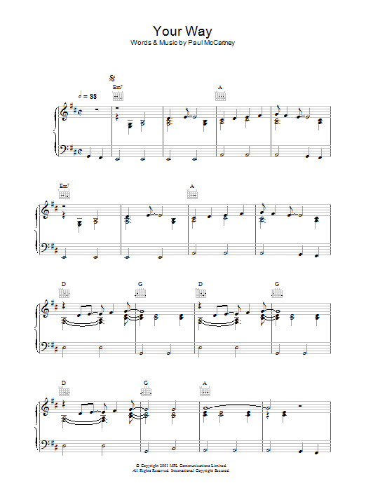 Download or print Paul McCartney Your Way sheet music, chords and digital score arranged for Guitar Chords/Lyrics. This Rock score includes 2 page(s).