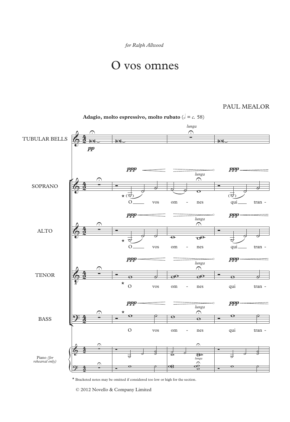 Download or print Paul Mealor O Vos Omnes sheet music, chords and digital score arranged for SATB Choir. This Inspirational score includes 7 page(s).