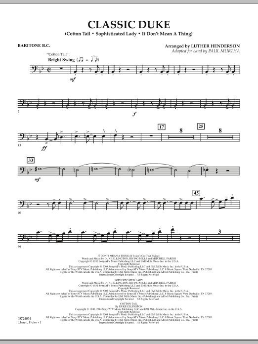 Download or print Paul Murtha Classic Duke - Baritone B.C. sheet music, chords and digital score arranged for Concert Band. This Concert score includes 4 page(s).