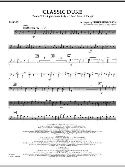 Download or print Paul Murtha Classic Duke - Bassoon sheet music, chords and digital score arranged for Concert Band. This Concert score includes 3 page(s).